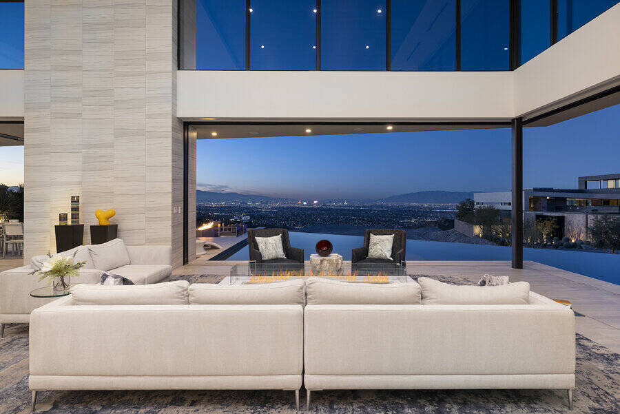 A custom-built house perched high above the lights of the Las Vegas Strip has gone on the market for $18.5 million.